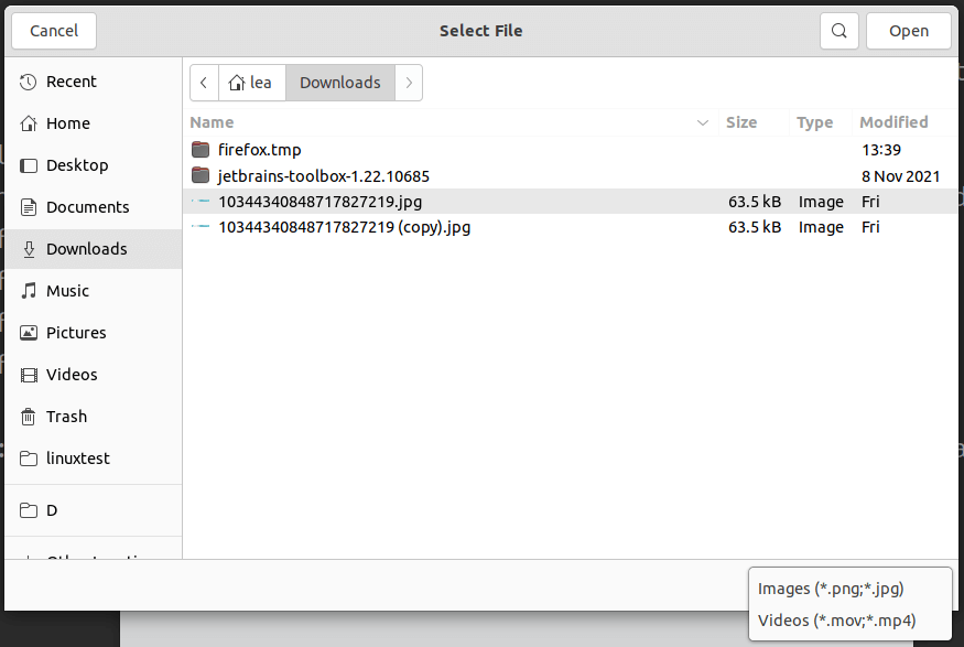 Windowsでは、ダイアログボックスで複数のファイルフィルタを使用できます。 それぞれのFileFiltersは、ダイアログ上で個別のエントリーとして表示されます: