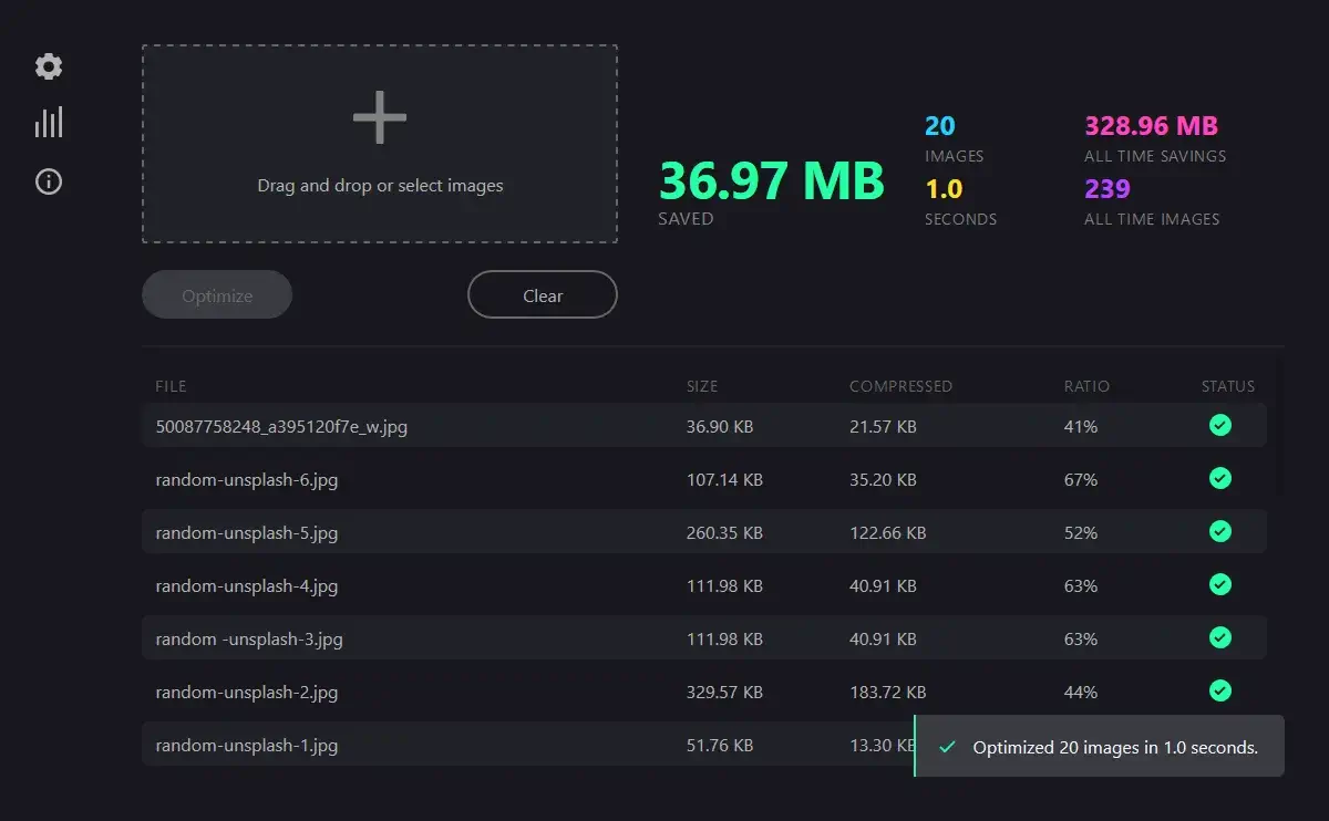 是一款桌面图像优化应用程序。 它支持 WebP、JPEG 和 PNG 图像格式之间的转换和压缩。